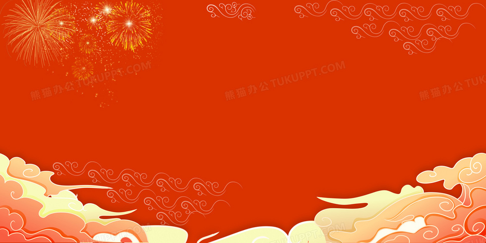 本作品内容为国风烟花喜庆背景, 格式为 psd, 大小19 MB, 图片尺寸为4724 x 2362, 作品中背景图片无需修改, 源文件无水印,可以直接使用, 欢迎使用熊猫办公。 如认为平台内容涉嫌侵权,可通过邮件:tousu@tukuppt.com提出书面通知,我们将及时处理。