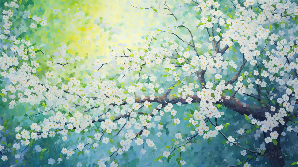 本作品内容为春季盛开的白色梨花插画, 格式为 jpg, 大小7 MB, 图片尺寸为2912 x 1632, 源文件无水印, 欢迎使用熊猫办公。 如认为平台内容涉嫌侵权,可通过邮件:tousu@tukuppt.com提出书面通知,我们将及时处理。