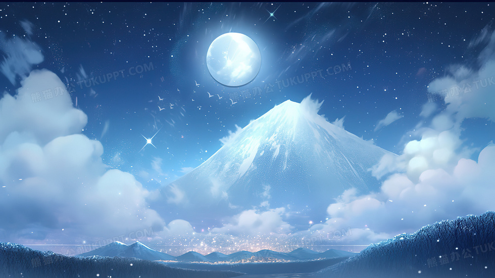 本作品内容为蓝色小清新风唯美夜晚天空风景插画, 格式为 jpg, 大小7 MB, 图片尺寸为2912 x 1632, 源文件无水印, 欢迎使用熊猫办公。 如认为平台内容涉嫌侵权,可通过邮件:tousu@tukuppt.com提出书面通知,我们将及时处理。