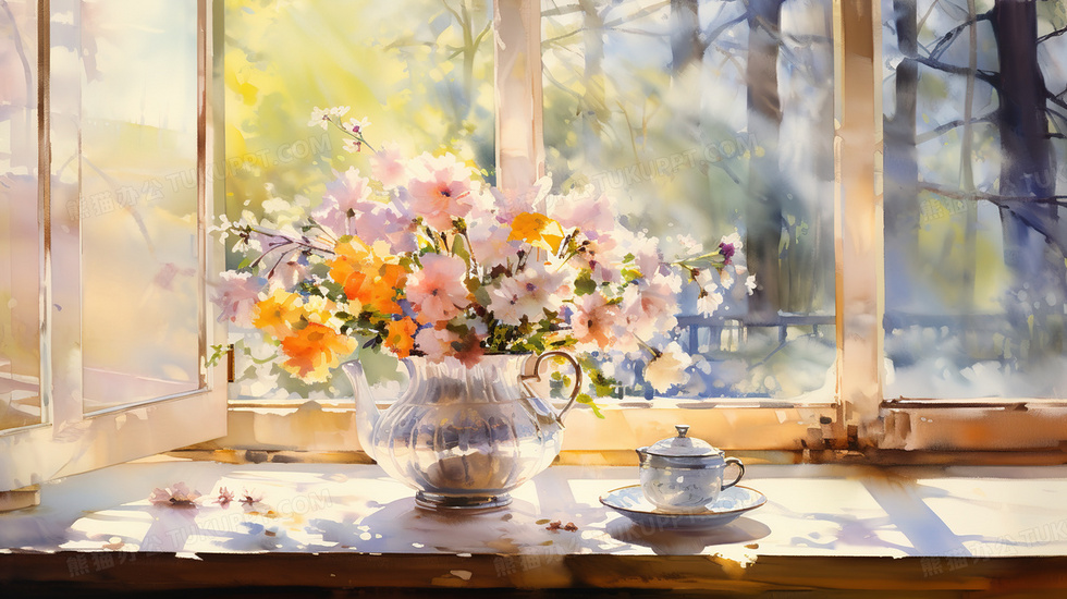 首页 > 插画 > 科技艺术 > 水彩手绘 > 唯美小清新风窗台花盆油画插画
