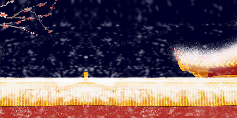 本作品内容为冬季雪景宫墙中国风古风背景, 格式为 psd, 大小53 MB, 图片尺寸为4724 x 2362, 作品中背景图片无需修改, 源文件无水印,可以直接使用, 欢迎使用熊猫办公。 如认为平台内容涉嫌侵权,可通过邮件:tousu@tukuppt.com提出书面通知,我们将及时处理。