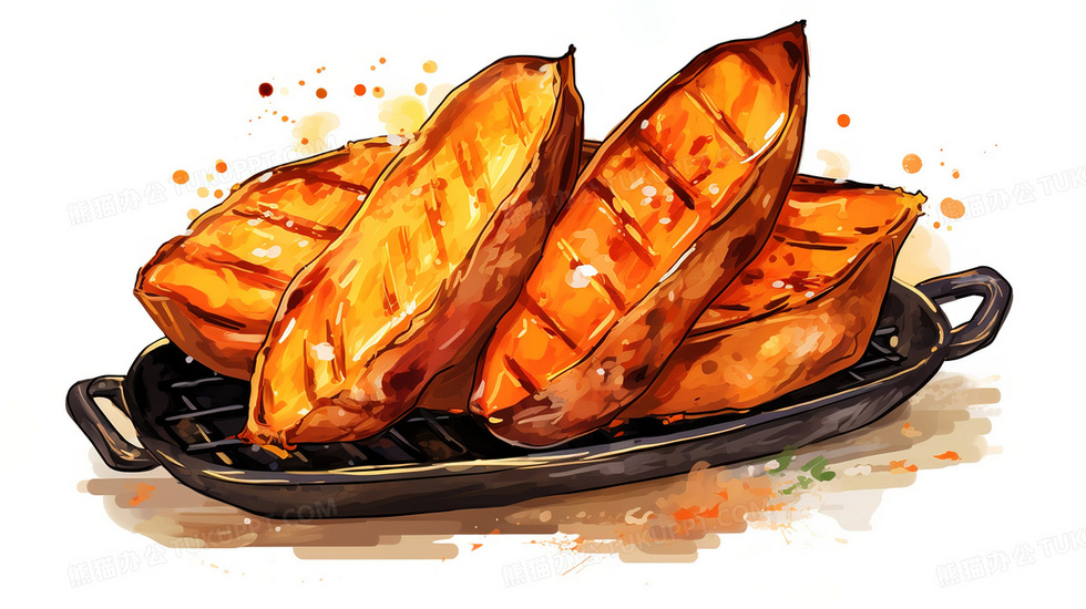 本作品内容为烤盘上的美味烤红薯插画, 格式为 jpg, 大小2 MB, 图片尺寸为2912 x 1632, 源文件无水印, 欢迎使用熊猫办公。 如认为平台内容涉嫌侵权,可通过邮件:tousu@tukuppt.com提出书面通知,我们将及时处理。