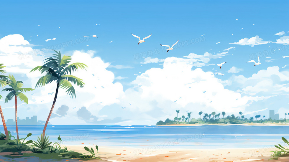 本作品内容为蓝色处暑海边度假休闲插画, 格式为 jpg, 大小4 MB, 图片尺寸为2912 x 1632, 源文件无水印, 欢迎使用熊猫办公。 如认为平台内容涉嫌侵权,可通过邮件:tousu@tukuppt.com提出书面通知,我们将及时处理。