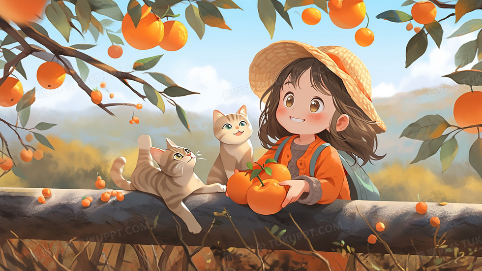 本作品内容为摘柿子的小女孩和猫咪插画, 格式为 jpg, 大小3 MB, 图片尺寸为2912 x 1632, 源文件无水印, 欢迎使用熊猫办公。 如认为平台内容涉嫌侵权,可通过邮件:tousu@tukuppt.com提出书面通知,我们将及时处理。
