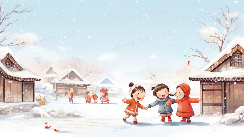 本作品内容为冬季新年寒假回老家玩耍的孩子插画, 格式为 jpg, 大小4 MB, 图片尺寸为2912 x 1632, 源文件无水印, 欢迎使用熊猫办公。 如认为平台内容涉嫌侵权,可通过邮件:tousu@tukuppt.com提出书面通知,我们将及时处理。