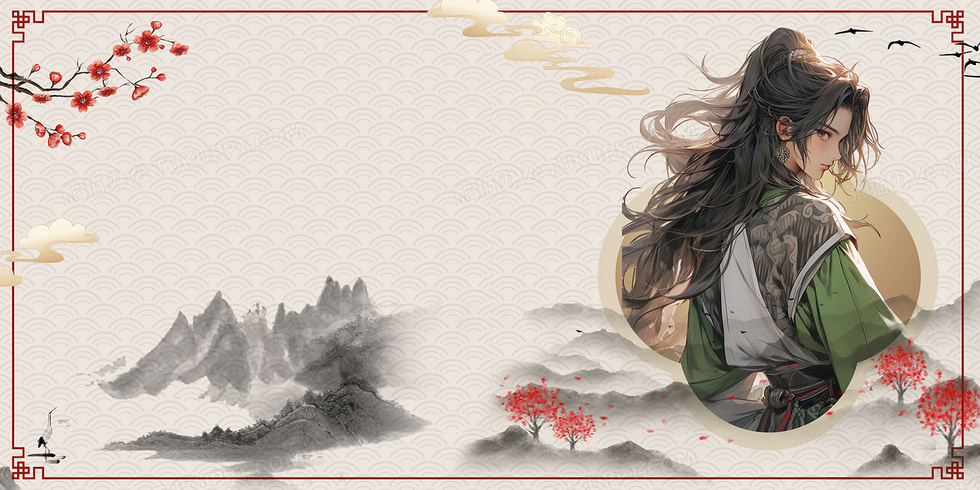 本作品内容为中国风古风水墨山水女将军人物背景, 格式为 psd, 大小55 MB, 图片尺寸为4722 x 2361, 作品中背景图片无需修改, 源文件无水印,可以直接使用, 欢迎使用熊猫办公。 如认为平台内容涉嫌侵权,可通过邮件:tousu@tukuppt.com提出书面通知,我们将及时处理。