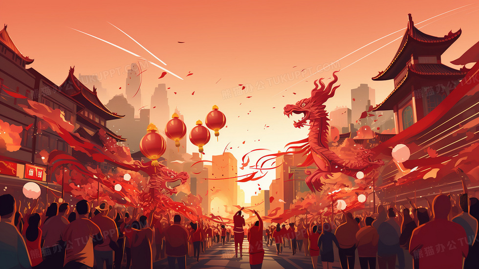 本作品内容为红色春节中国风热闹集市建筑插画, 格式为 jpg, 大小5 MB, 图片尺寸为2912 x 1632, 源文件无水印, 欢迎使用熊猫办公。 如认为平台内容涉嫌侵权,可通过邮件:tousu@tukuppt.com提出书面通知,我们将及时处理。