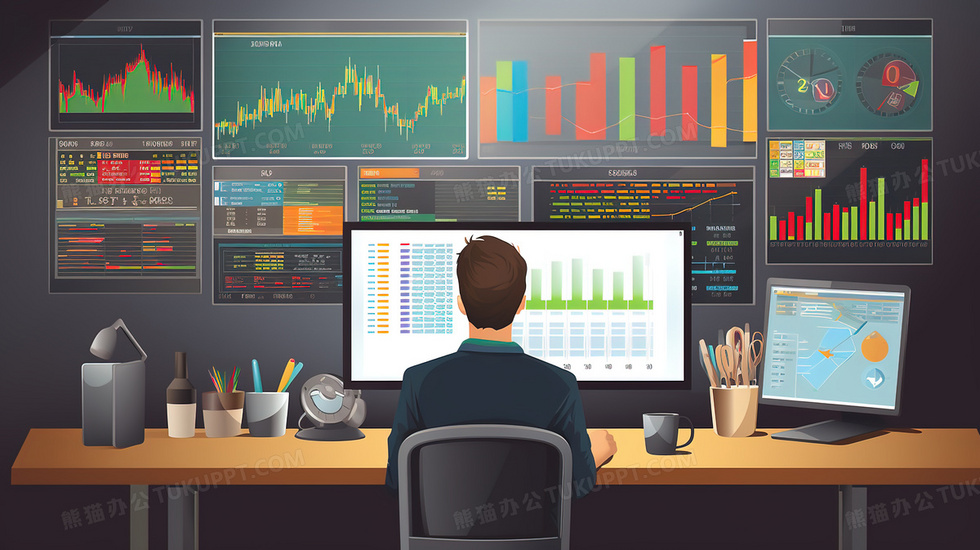 本作品内容为在电脑前研究股票行市的商务精英插画, 格式为 jpg, 大小5 MB, 图片尺寸为2912 x 1632, 源文件无水印, 欢迎使用熊猫办公。 如认为平台内容涉嫌侵权,可通过邮件:tousu@tukuppt.com提出书面通知,我们将及时处理。