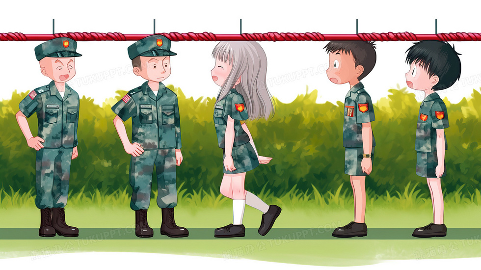 本作品内容为学生军训户外训练插画, 格式为 jpg, 大小5 MB, 图片尺寸为2912 x 1632, 源文件无水印, 欢迎使用熊猫办公。 如认为平台内容涉嫌侵权,可通过邮件:tousu@tukuppt.com提出书面通知,我们将及时处理。