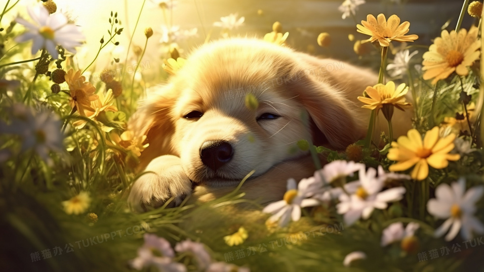 本作品内容为趴在开满小雏菊的草地上惬意睡觉的可爱小狗插画, 格式为 jpg, 大小5 MB, 图片尺寸为2912 x 1632, 源文件无水印, 欢迎使用熊猫办公。 如认为平台内容涉嫌侵权,可通过邮件:tousu@tukuppt.com提出书面通知,我们将及时处理。
