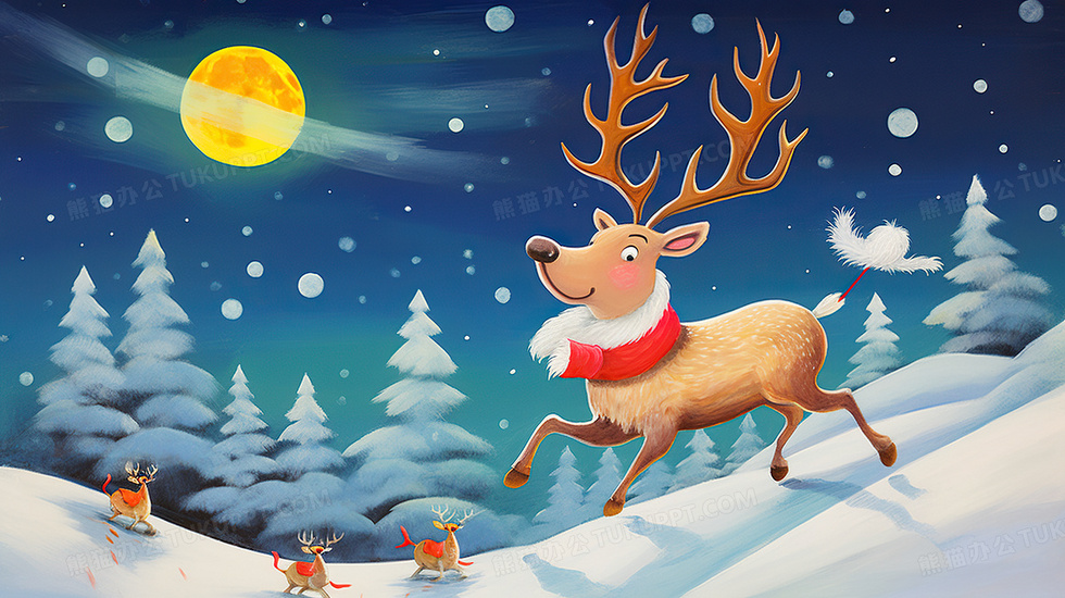 本作品内容为圣诞节卡通可爱麋鹿插画, 格式为 jpg, 大小7 MB, 图片尺寸为2912 x 1632, 源文件无水印, 欢迎使用熊猫办公。 如认为平台内容涉嫌侵权,可通过邮件:tousu@tukuppt.com提出书面通知,我们将及时处理。