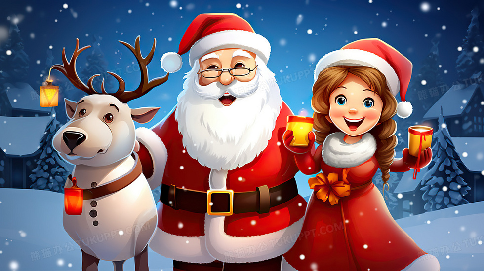 本作品内容为圣诞节卡通圣诞老人和麋鹿插画, 格式为 jpg, 大小5 MB, 图片尺寸为2912 x 1632, 源文件无水印, 欢迎使用熊猫办公。 如认为平台内容涉嫌侵权,可通过邮件:tousu@tukuppt.com提出书面通知,我们将及时处理。