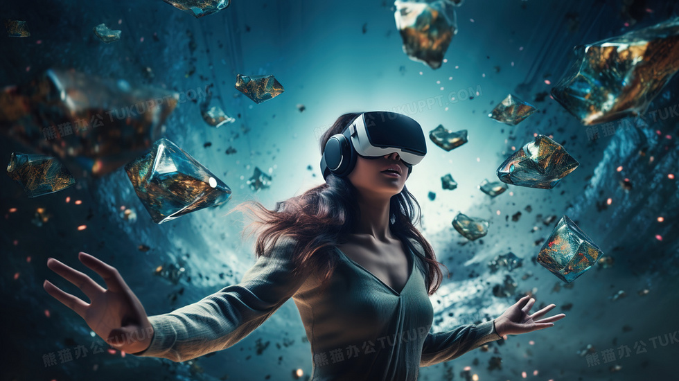 本作品内容为带着VR眼镜沉浸在奇幻虚拟世界中科技超现实插画, 格式为 jpg, 大小6 MB, 图片尺寸为2912 x 1632, 源文件无水印, 欢迎使用熊猫办公。 如认为平台内容涉嫌侵权,可通过邮件:tousu@tukuppt.com提出书面通知,我们将及时处理。