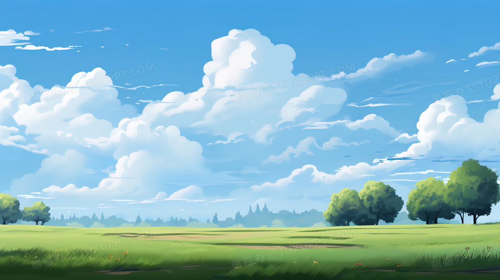 本作品内容为蓝天白云下广阔的青青草原插画, 格式为 jpg, 大小4 MB, 图片尺寸为2912 x 1632, 源文件无水印, 欢迎使用熊猫办公。 如认为平台内容涉嫌侵权,可通过邮件:tousu@tukuppt.com提出书面通知,我们将及时处理。