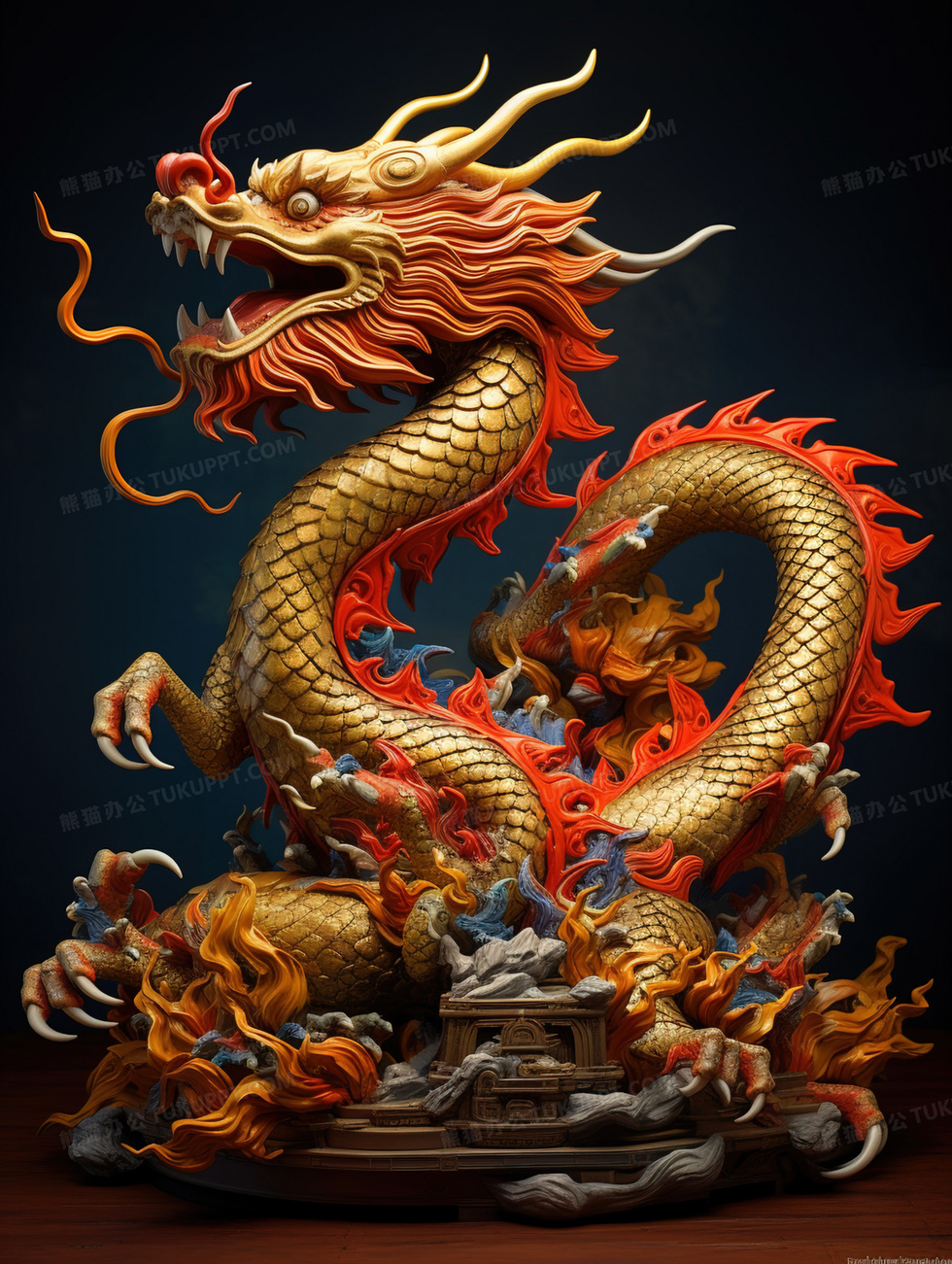 本作品内容为红色3D立体吉祥中国龙摆件插画, 格式为 jpg, 大小6 MB, 图片尺寸为1856 x 2464, 源文件无水印, 欢迎使用熊猫办公。 如认为平台内容涉嫌侵权,可通过邮件:tousu@tukuppt.com提出书面通知,我们将及时处理。