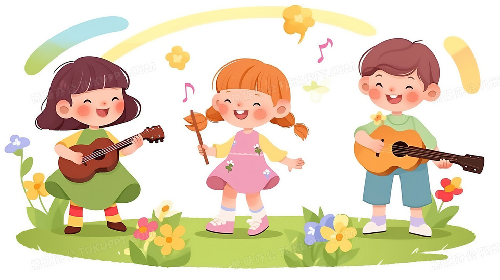 本作品内容为一群小朋友在草地上载歌载舞创意插画, 格式为 jpg, 大小2 MB, 图片尺寸为2912 x 1632, 源文件无水印, 欢迎使用熊猫办公。 如认为平台内容涉嫌侵权,可通过邮件:tousu@tukuppt.com提出书面通知,我们将及时处理。
