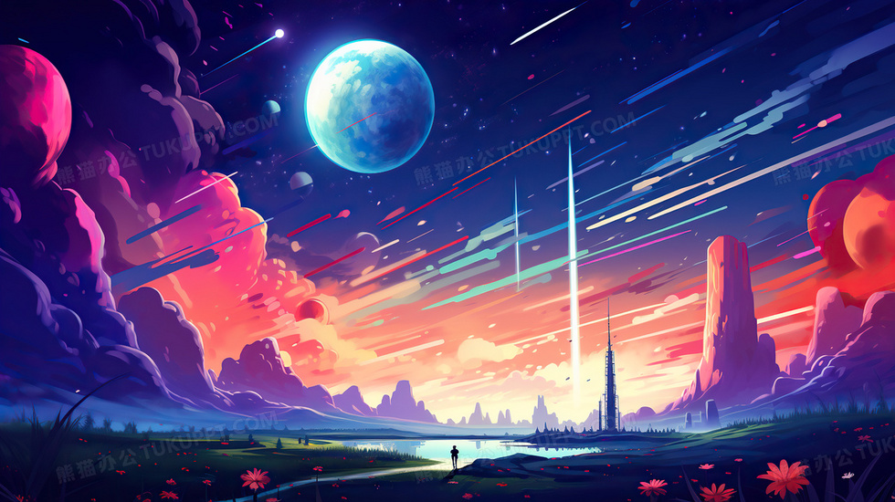 本作品内容为紫色外太空宇宙星球梦幻唯美航天插画, 格式为 jpg, 大小6 MB, 图片尺寸为2912 x 1632, 源文件无水印, 欢迎使用熊猫办公。 如认为平台内容涉嫌侵权,可通过邮件:tousu@tukuppt.com提出书面通知,我们将及时处理。