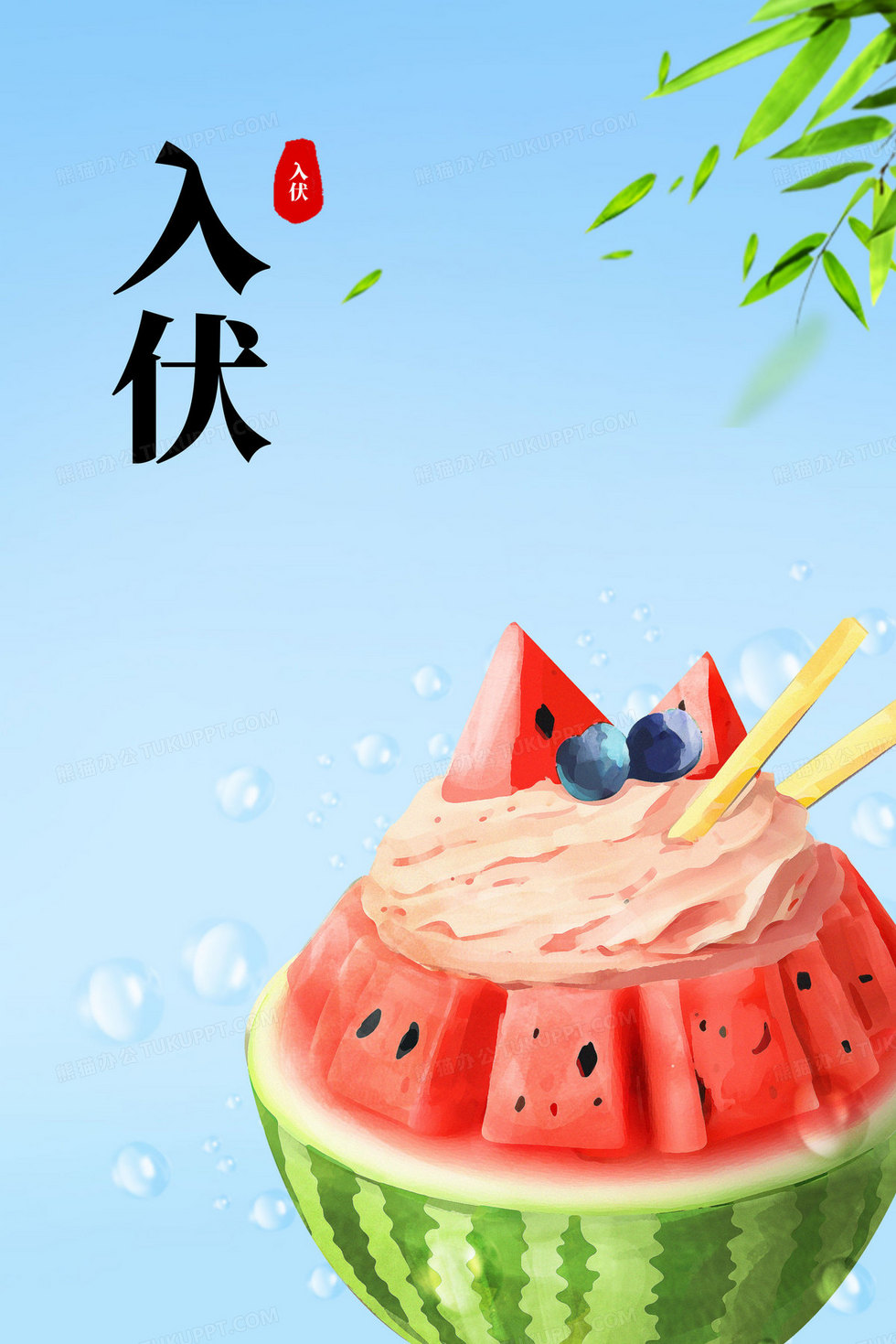 本作品内容为入伏夏天西瓜冰淇淋解暑手绘插画, 格式为 psd, 大小79 MB, 请使用软件PhotoShop(CS6)打开, 源文件无水印, 欢迎使用熊猫办公。 如认为平台内容涉嫌侵权,可通过邮件:tousu@tukuppt.com提出书面通知,我们将及时处理。