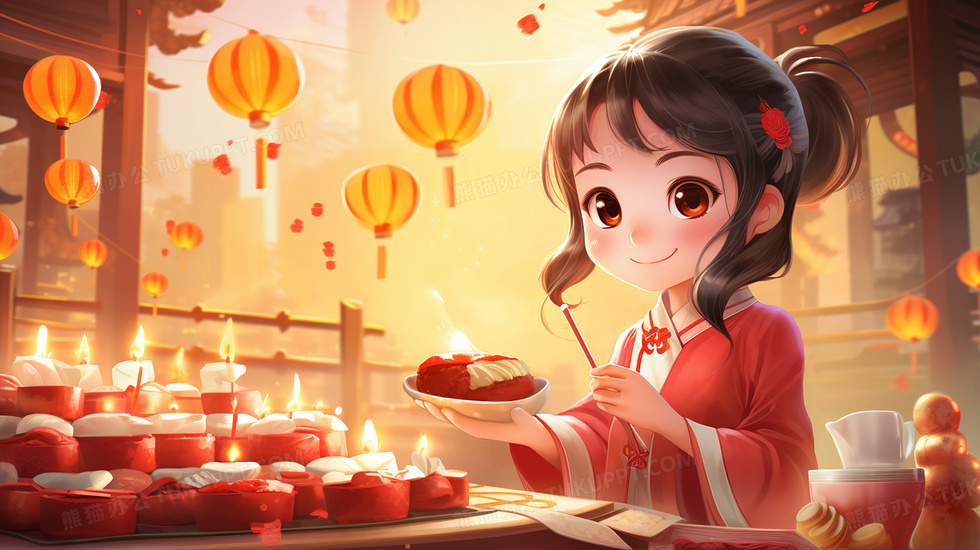 本作品内容为春节庆典里点蜡烛的小女孩插画, 格式为 jpg, 大小5 MB, 图片尺寸为2912 x 1632, 源文件无水印, 欢迎使用熊猫办公。 如认为平台内容涉嫌侵权,可通过邮件:tousu@tukuppt.com提出书面通知,我们将及时处理。