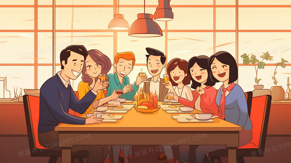 本作品内容为朋友同事在餐厅里聚餐卡通插画, 格式为 jpg, 大小5 MB, 图片尺寸为2912 x 1632, 源文件无水印, 欢迎使用熊猫办公。 如认为平台内容涉嫌侵权,可通过邮件:tousu@tukuppt.com提出书面通知,我们将及时处理。