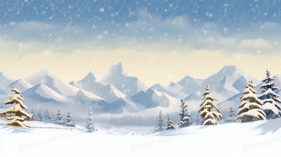 本作品内容为唯美意境白雪皑皑雪景插画, 格式为 jpg, 大小6 MB, 图片尺寸为2912 x 1632, 源文件无水印, 欢迎使用熊猫办公。 如认为平台内容涉嫌侵权,可通过邮件:tousu@tukuppt.com提出书面通知,我们将及时处理。