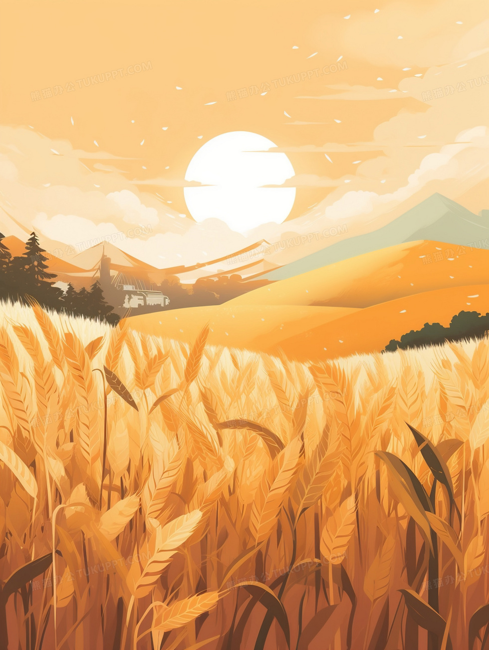 本作品内容为金色小麦丰收的季节芒种节气插画, 格式为 jpg, 大小4 MB, 图片尺寸为1856 x 2464, 源文件无水印, 欢迎使用熊猫办公。 如认为平台内容涉嫌侵权,可通过邮件:tousu@tukuppt.com提出书面通知,我们将及时处理。