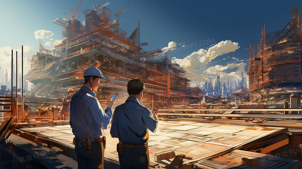 本作品内容为工程师看着前方的建筑工地监督施工情况创意插画, 格式为 jpg, 大小8 MB, 图片尺寸为2912 x 1632, 源文件无水印, 欢迎使用熊猫办公。 如认为平台内容涉嫌侵权,可通过邮件:tousu@tukuppt.com提出书面通知,我们将及时处理。