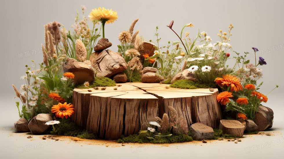 本作品内容为3D立体唯美意境花朵木头产品展示台图片, 格式为 jpg, 大小7 MB, 图片尺寸为2912 x 1632, 源文件无水印, 欢迎使用熊猫办公。 如认为平台内容涉嫌侵权,可通过邮件:tousu@tukuppt.com提出书面通知,我们将及时处理。