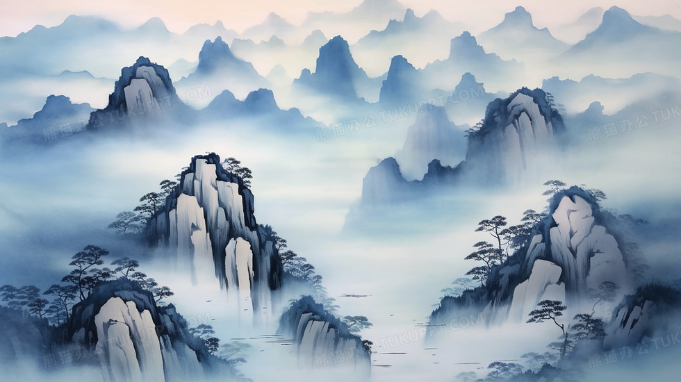本作品内容为中式意境泼墨山水风景画插画, 格式为 jpg, 大小5 MB, 图片尺寸为2912 x 1632, 源文件无水印, 欢迎使用熊猫办公。 如认为平台内容涉嫌侵权,可通过邮件:tousu@tukuppt.com提出书面通知,我们将及时处理。