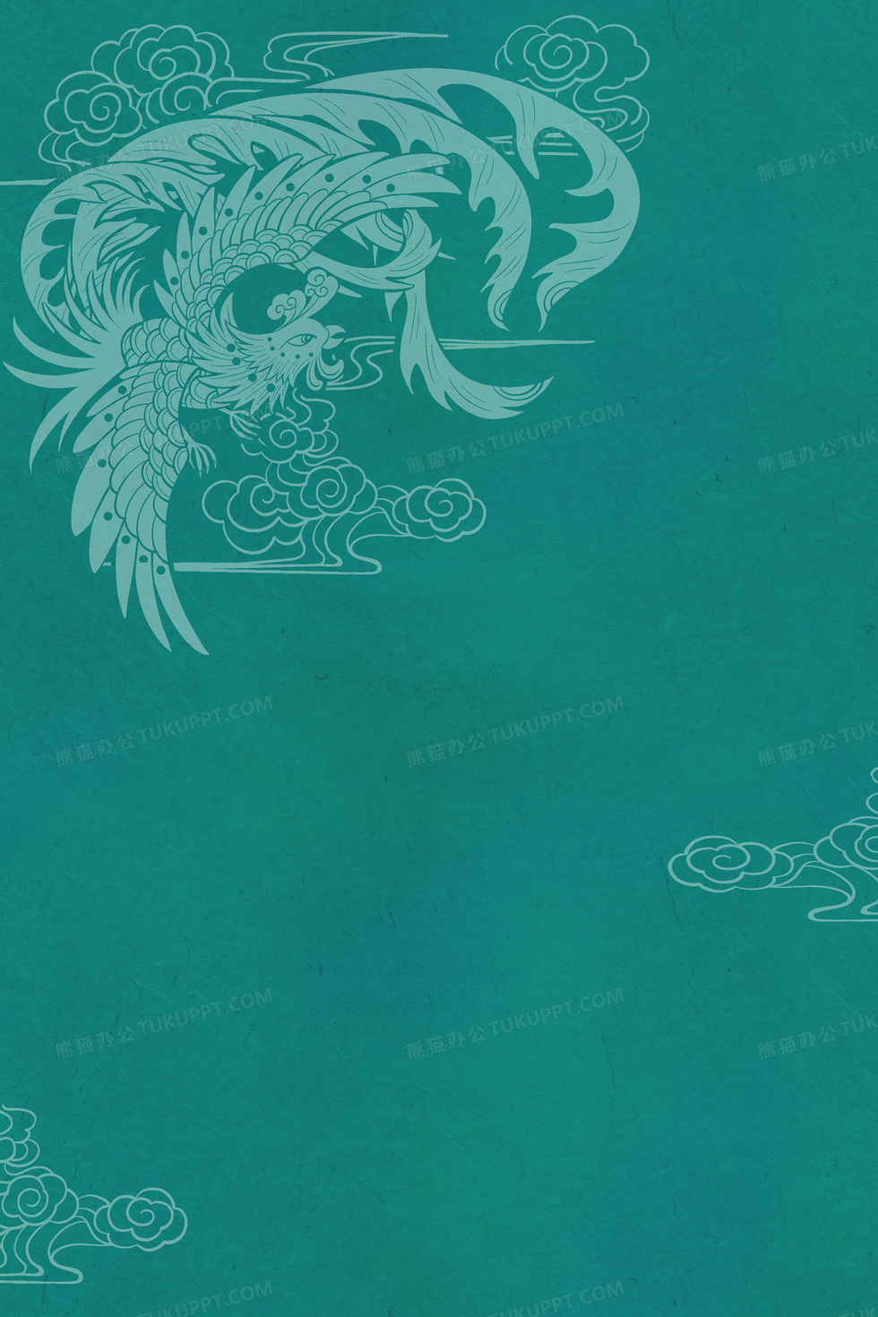 本作品内容为中国风凤凰暗纹背景, 格式为 psd, 大小80 MB, 图片尺寸为3543 x 5315, 作品中背景图片无需修改, 源文件无水印,可以直接使用, 欢迎使用熊猫办公。 如认为平台内容涉嫌侵权,可通过邮件:tousu@tukuppt.com提出书面通知,我们将及时处理。