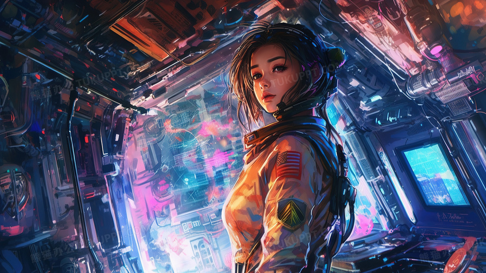 本作品内容为彩色科技感女宇航员插画, 格式为 jpg, 大小7 MB, 图片尺寸为2912 x 1632, 源文件无水印, 欢迎使用熊猫办公。 如认为平台内容涉嫌侵权,可通过邮件:tousu@tukuppt.com提出书面通知,我们将及时处理。