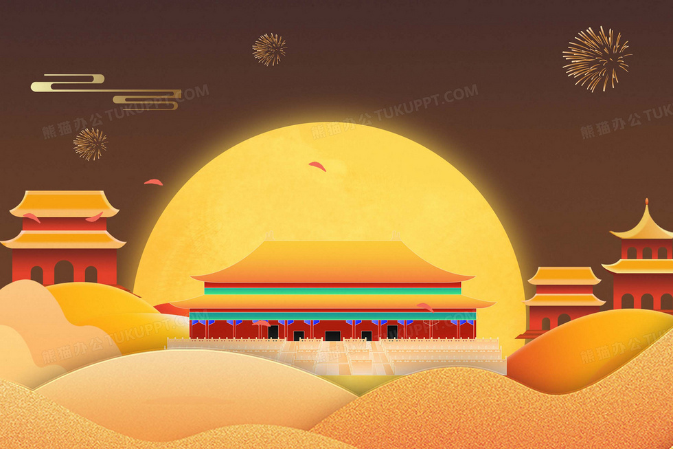 本作品内容为中秋国庆双节同庆国潮建筑宣传插画, 格式为 psd, 大小36 MB, 请使用软件PhotoShop(CS6)打开, 源文件无水印, 欢迎使用熊猫办公。 如认为平台内容涉嫌侵权,可通过邮件:tousu@tukuppt.com提出书面通知,我们将及时处理。