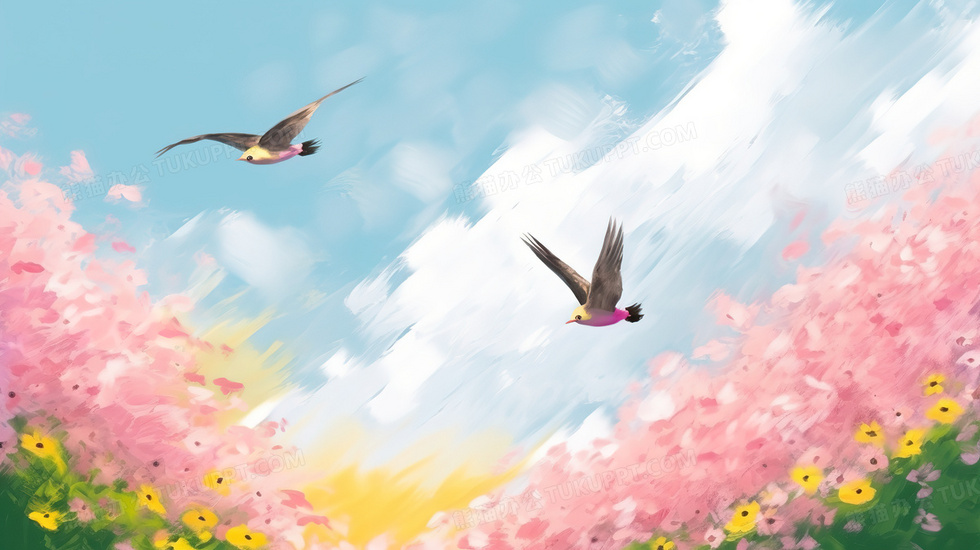 本作品内容为夏日唯美花海中飞翔的小鸟风景插画, 格式为 jpg, 大小5 MB, 图片尺寸为2912 x 1632, 源文件无水印, 欢迎使用熊猫办公。 如认为平台内容涉嫌侵权,可通过邮件:tousu@tukuppt.com提出书面通知,我们将及时处理。