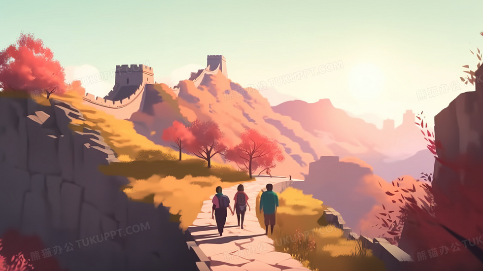 本作品内容为爬长城的人物风景插画, 格式为 jpg, 大小5 MB, 图片尺寸为2912 x 1632, 源文件无水印, 欢迎使用熊猫办公。 如认为平台内容涉嫌侵权,可通过邮件:tousu@tukuppt.com提出书面通知,我们将及时处理。