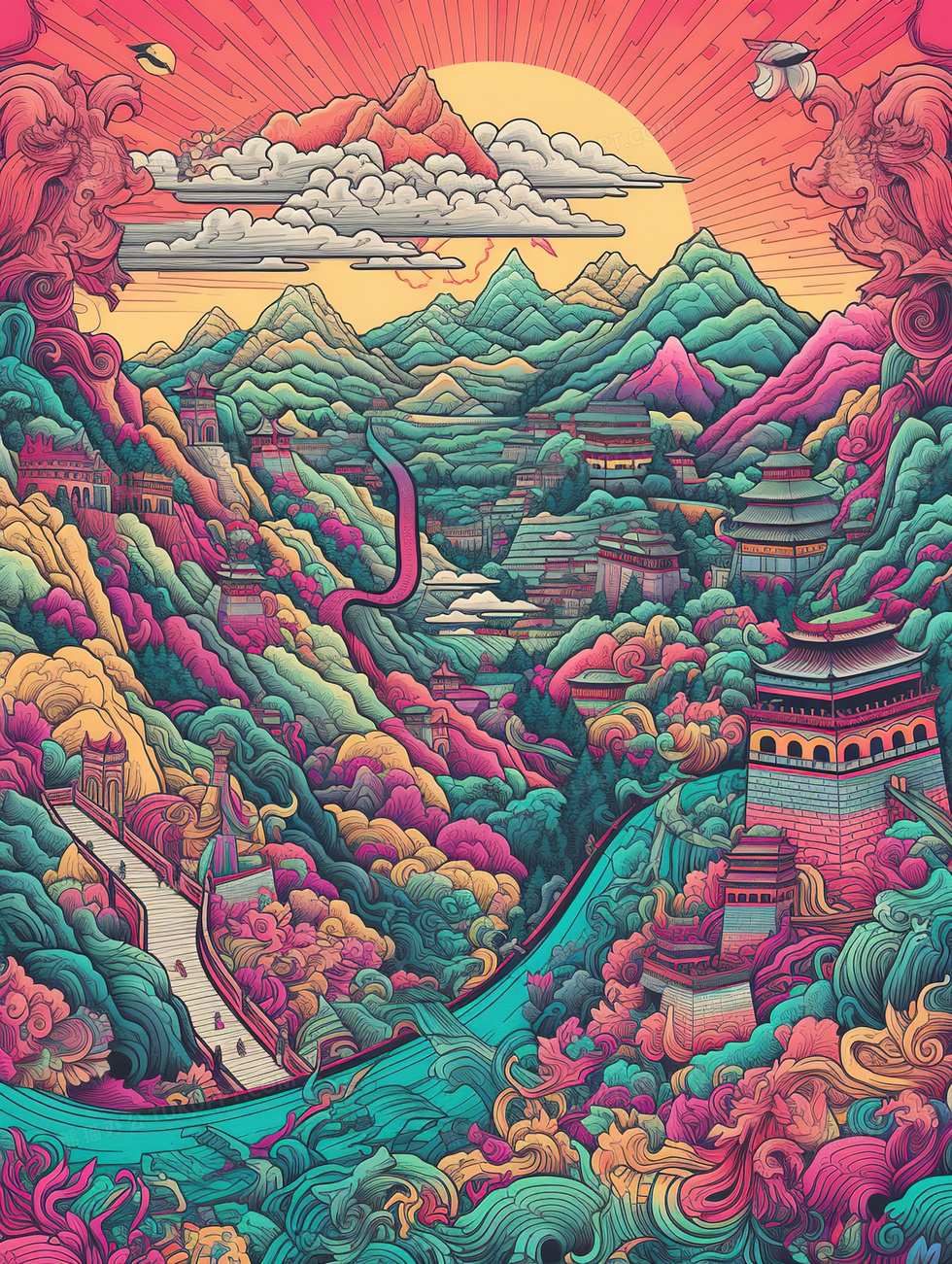 本作品内容为彩色中国风唯美历史长城风景插画, 格式为 jpg, 大小10 MB, 图片尺寸为1856 x 2464, 源文件无水印, 欢迎使用熊猫办公。 如认为平台内容涉嫌侵权,可通过邮件:tousu@tukuppt.com提出书面通知,我们将及时处理。