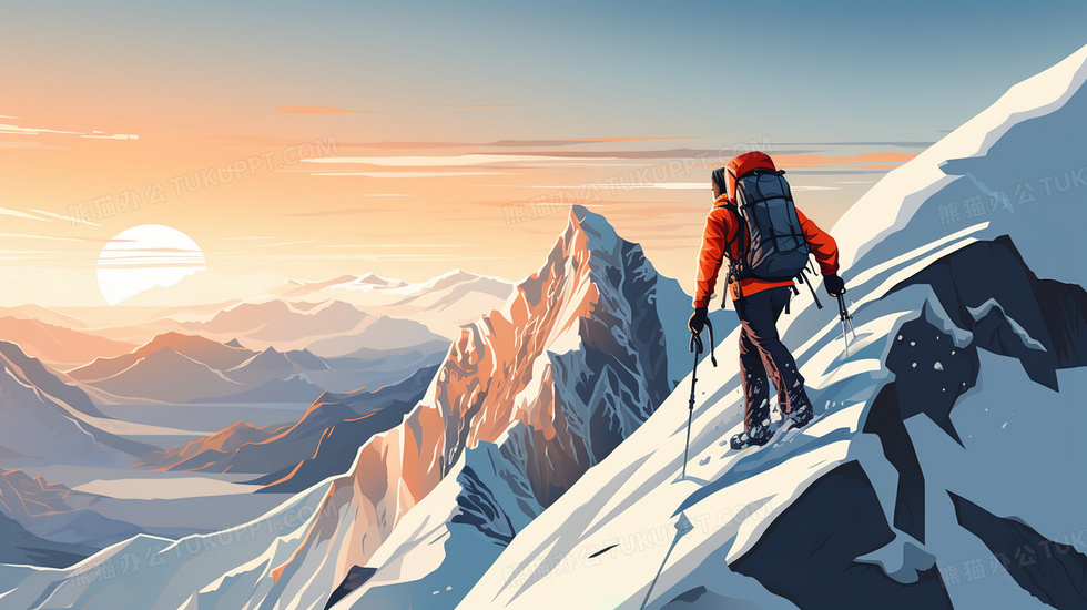 本作品内容为登上雪山之巅的登山员美景插画, 格式为 jpg, 大小4 MB, 图片尺寸为2912 x 1632, 源文件无水印, 欢迎使用熊猫办公。 如认为平台内容涉嫌侵权,可通过邮件:tousu@tukuppt.com提出书面通知,我们将及时处理。