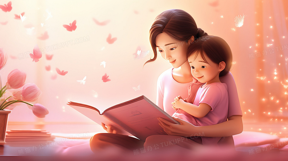 本作品内容为母亲和女儿看书讲故事粉色温馨插画, 格式为 jpg, 大小4 MB, 图片尺寸为2912 x 1632, 源文件无水印, 欢迎使用熊猫办公。 如认为平台内容涉嫌侵权,可通过邮件:tousu@tukuppt.com提出书面通知,我们将及时处理。