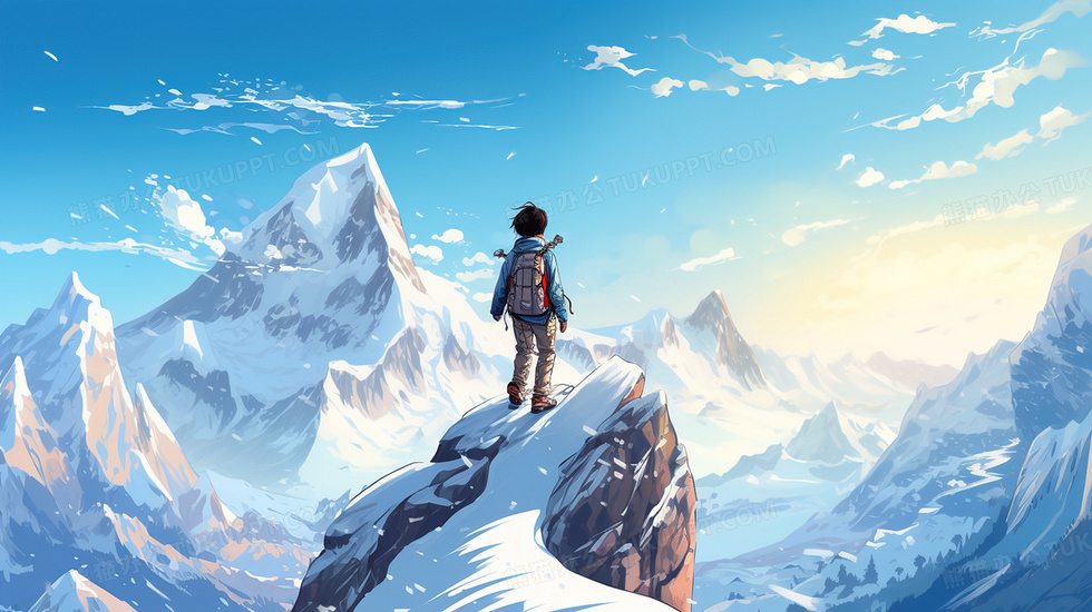 本作品内容为登上雪山巅峰的男孩美景插画, 格式为 jpg, 大小5 MB, 图片尺寸为2912 x 1632, 源文件无水印, 欢迎使用熊猫办公。 如认为平台内容涉嫌侵权,可通过邮件:tousu@tukuppt.com提出书面通知,我们将及时处理。