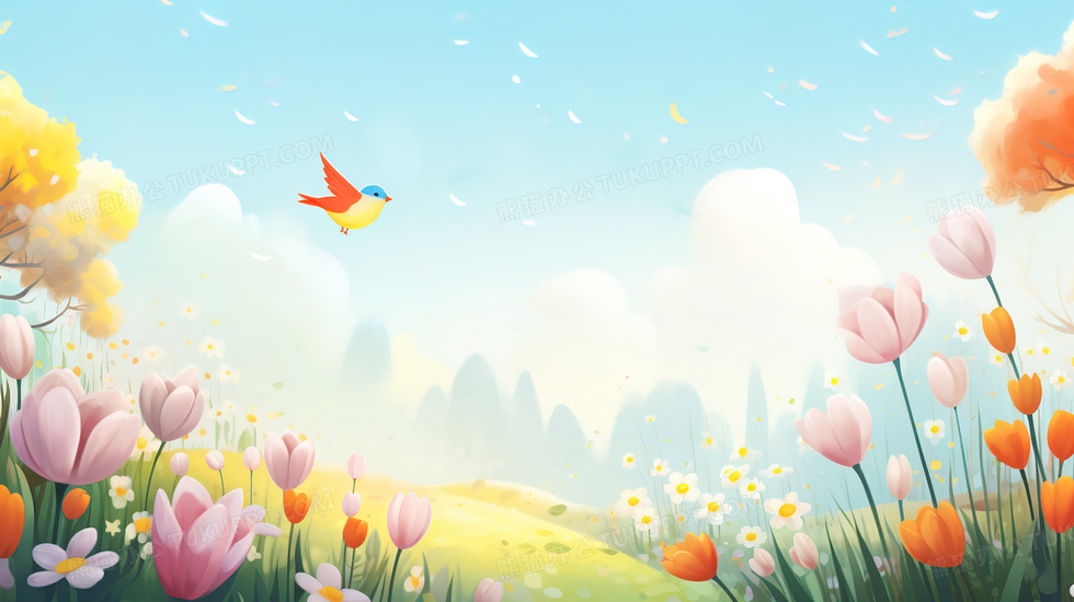 本作品内容为春天绿色草地上绽放的花海唯美清新插画, 格式为 jpg, 大小4 MB, 图片尺寸为2912 x 1632, 源文件无水印, 欢迎使用熊猫办公。 如认为平台内容涉嫌侵权,可通过邮件:tousu@tukuppt.com提出书面通知,我们将及时处理。