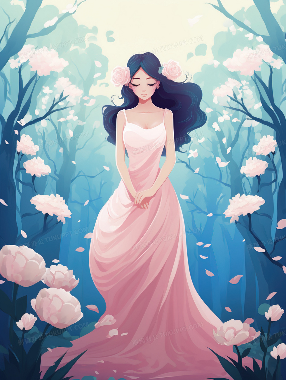本作品内容为树林花朵中穿裙子的长发美女插画, 格式为 jpg, 大小4 MB, 图片尺寸为1856 x 2464, 源文件无水印, 欢迎使用熊猫办公。 如认为平台内容涉嫌侵权,可通过邮件:tousu@tukuppt.com提出书面通知,我们将及时处理。