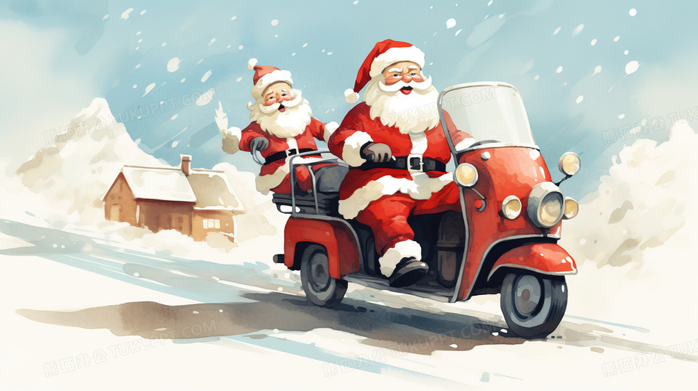 本作品内容为圣诞节圣诞老人开车送礼物插画, 格式为 jpg, 大小5 MB, 图片尺寸为2912 x 1632, 源文件无水印, 欢迎使用熊猫办公。 如认为平台内容涉嫌侵权,可通过邮件:tousu@tukuppt.com提出书面通知,我们将及时处理。