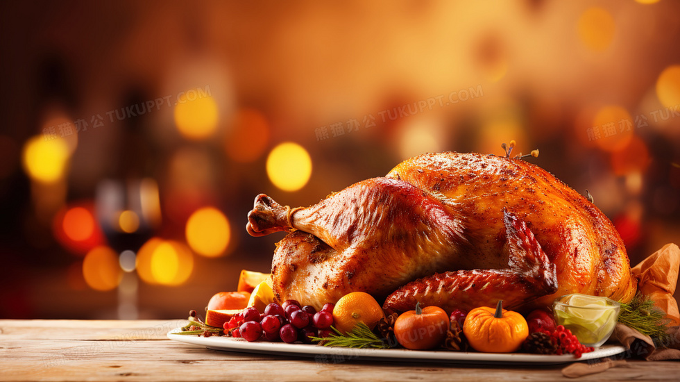 本作品内容为节日餐桌上的整只烤鸡美食概念插画, 格式为 jpg, 大小5 MB, 图片尺寸为2912 x 1632, 源文件无水印, 欢迎使用熊猫办公。 如认为平台内容涉嫌侵权,可通过邮件:tousu@tukuppt.com提出书面通知,我们将及时处理。