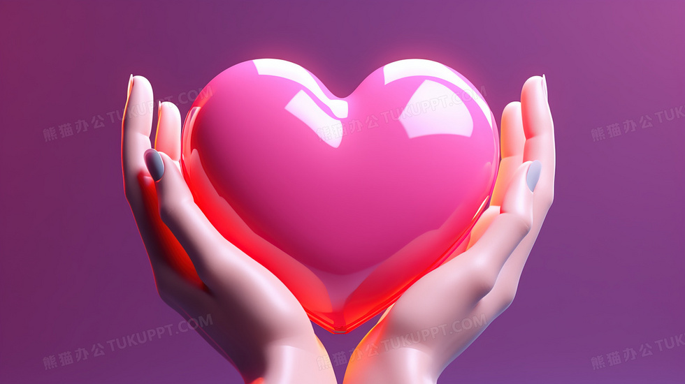 本作品内容为3D手持心形模型概念图片, 格式为 jpg, 大小3 MB, 图片尺寸为2912 x 1632, 源文件无水印, 欢迎使用熊猫办公。 如认为平台内容涉嫌侵权,可通过邮件:tousu@tukuppt.com提出书面通知,我们将及时处理。