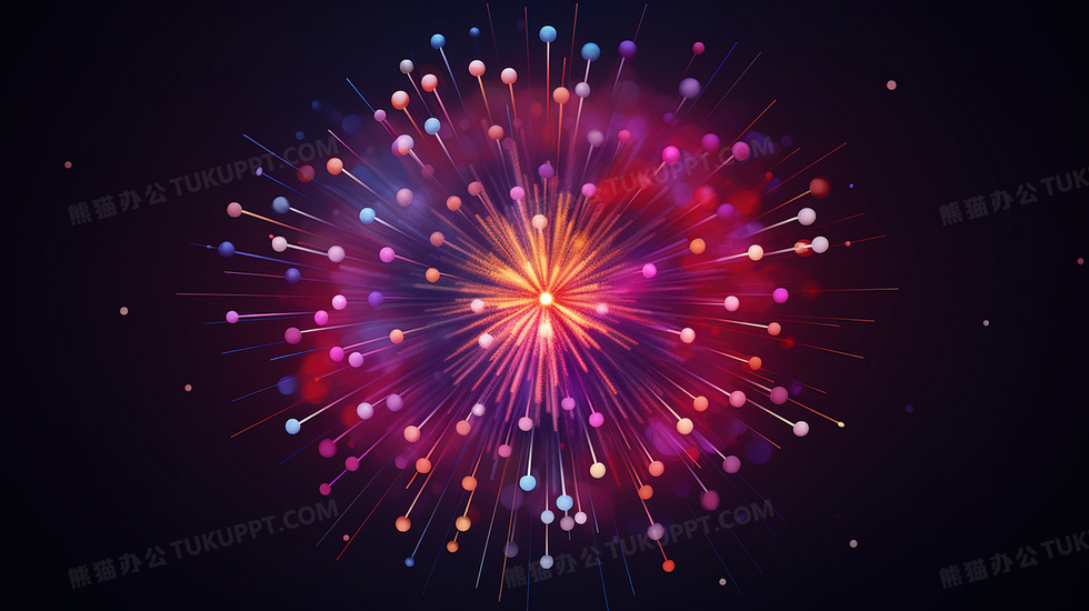 本作品内容为新年烟花装饰夜空插画, 格式为 jpg, 大小5 MB, 图片尺寸为2912 x 1632, 源文件无水印, 欢迎使用熊猫办公。 如认为平台内容涉嫌侵权,可通过邮件:tousu@tukuppt.com提出书面通知,我们将及时处理。