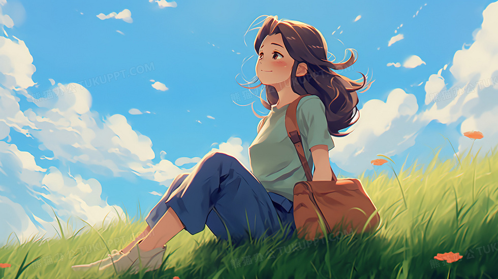 本作品内容为一个坐在草地上放松的女生插画, 格式为 jpg, 大小5 MB, 图片尺寸为2912 x 1632, 源文件无水印, 欢迎使用熊猫办公。 如认为平台内容涉嫌侵权,可通过邮件:tousu@tukuppt.com提出书面通知,我们将及时处理。