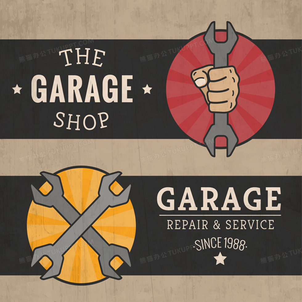本作品内容为2款复古汽车维修背景素材, 格式为 ai, 图片尺寸为2100 x 2100, 作品中背景图片无需修改, 源文件无水印,可以直接使用, 欢迎使用熊猫办公。 如认为平台内容涉嫌侵权,可通过邮件:tousu@tukuppt.com提出书面通知,我们将及时处理。