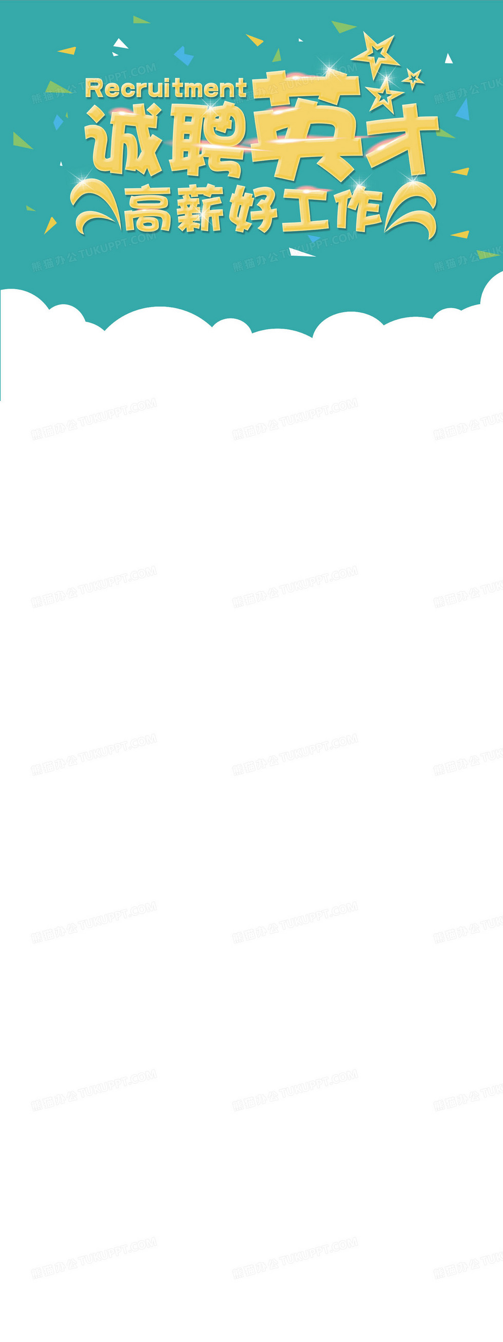 本作品内容为诚聘英才招聘卡通背景, 格式为 psd, 图片尺寸为1701 x 4535, 作品中背景图片无需修改, 源文件无水印,可以直接使用, 欢迎使用熊猫办公。 如认为平台内容涉嫌侵权,可通过邮件:tousu@tukuppt.com提出书面通知,我们将及时处理。
