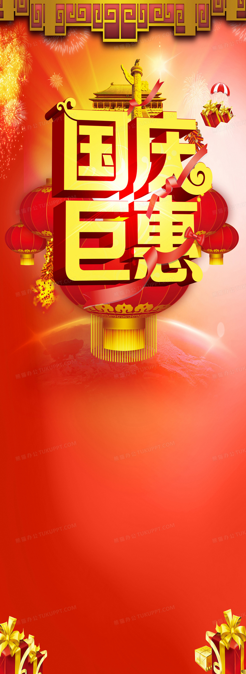 本作品内容为国庆巨恵促销展板背景, 格式为 psd, 图片尺寸为2000 x 5476, 作品中背景图片无需修改, 源文件无水印,可以直接使用, 欢迎使用熊猫办公。 如认为平台内容涉嫌侵权,可通过邮件:tousu@tukuppt.com提出书面通知,我们将及时处理。
