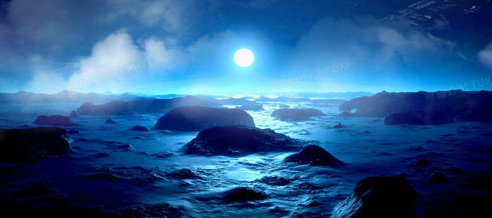本作品内容为蓝色月光大海背景, 格式为 jpg, 图片尺寸为1920 x 849, 作品中背景图片无需修改, 源文件无水印,可以直接使用, 欢迎使用熊猫办公。 如认为平台内容涉嫌侵权,可通过邮件:tousu@tukuppt.com提出书面通知,我们将及时处理。