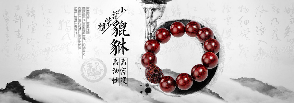 本作品内容为水墨手串珠宝背景, 格式为 psd, 图片尺寸为1920 x 675, 作品中背景图片无需修改, 源文件无水印,可以直接使用, 欢迎使用熊猫办公。 如认为平台内容涉嫌侵权,可通过邮件:tousu@tukuppt.com提出书面通知,我们将及时处理。